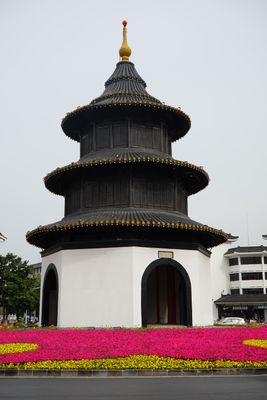 The structure stands as the sole pavilion in China combining three stories, three eaves, and nine angled roofs in its architectural design.