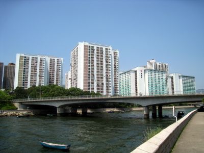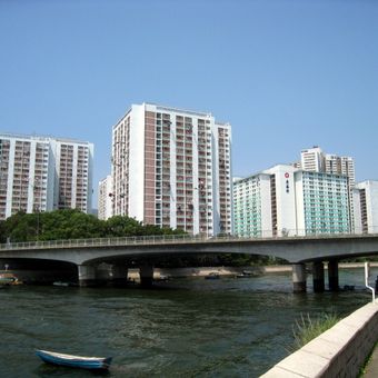 Kwong Fuk Estate is a residential housing complex in Tai Po District composed of multiple apartment buildings containing several thousand units situated on reclaimed land east of the old market area. The development features various building types arranged in a cohesive residential setting.