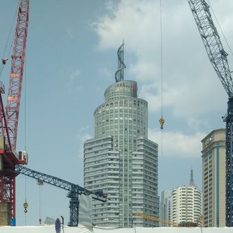 Construction of the Eye of Spring Trade Center began in December 2017 after the demolition of the Historic Workers' Cultural Hall at Dongfeng Square.