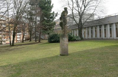 Pomník Julia Fučíka před školou v ulici U Stadionu v Mostě