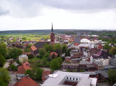 The city stretches along the Stör River with numerous shops, restaurants, and administrative buildings spread across its 28 square kilometer area.