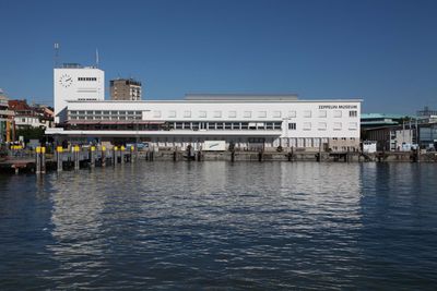 The Zeppelin Museum occupies 4,000 square meters of exhibition space in a former harbor train station along Lake Constance, displaying 1,500 original exhibits.
