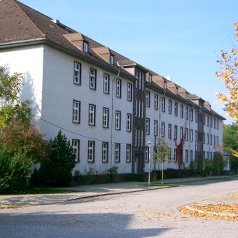 The Zieten-Kaserne is a former military facility in Göttingen with multiple buildings designed according to standardized plans from the 1930s. The site spreads across a large area and includes training grounds, supply facilities, and accommodation blocks for stationed personnel.