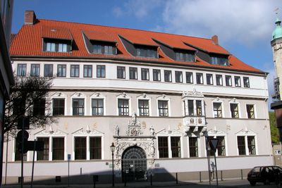 Built between 1626 and 1630 during the Thirty Years War for mayor Georg Achtermann, the structure was damaged in 1944 and reconstructed from 1947 to 1949.