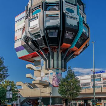 International graffiti artists transformed the exterior during the Turmkunst 2010 project, turning the building into a large-scale street art exhibition.