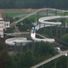 Schweizer Bobbahn is a steel roller coaster at Heide Park featuring white tracks supported by green steel columns. The course winds through the park with varying elevation changes and passes through several enclosed tunnel sections.