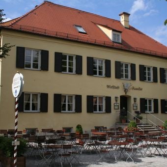 The building maintains its original function as a dining establishment where visitors experience traditional Bavarian gastronomy within historical walls.