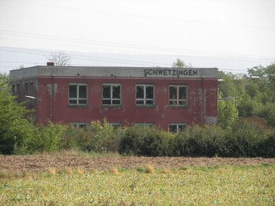 The railway repair complex spans across 19 hectares between the municipalities of Schwetzingen and Plankstadt, incorporating multiple industrial buildings and maintenance halls.