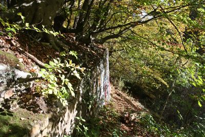 The castle remains include stone walls and ditches positioned on a wooded hill slope near where the Ostholzbach stream meets the Ruhr River.
