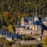 The castle features four corner towers and multiple wings, standing on a hilltop above the town of Ludwigsstadt in northern Bavaria.