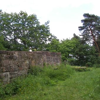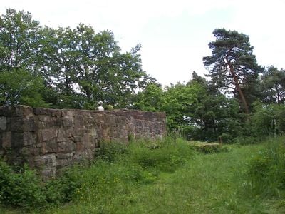 The medieval fortress stands on a 250-meter sandstone hill north of Wehrda, overlooking the Lahntal valley with remaining wall structures spanning 620 square meters.