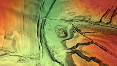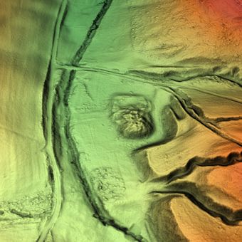 The castle site connects to the Eichbach valley through a hollow path, with the creek potentially serving the former moat system.