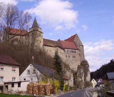 The castle's position in the Little Switzerland region of Franconia places it among distinctive rock formations and extensive hiking trail networks.