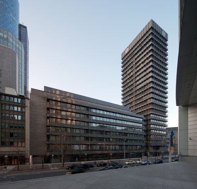 The tower occupied a central location in Frankfurt's banking district, positioned near major transportation hubs and other financial buildings. Its main entrance was situated on Große Gallusstraße, making it readily accessible within the downtown area.