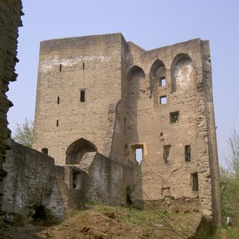 The castle ruins represent medieval German defensive architecture, with its strategic position and design reflecting the military requirements of the period.