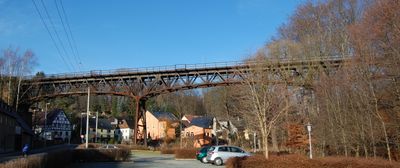 The Marienhütte factory from Cainsdorf constructed the viaduct in 1897 for 190,836 marks, using steel instead of cast iron for one of the first times.