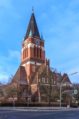 Built in 1905, this religious structure represents an early 20th-century interpretation of medieval church architecture in the growing Berlin suburbs.
