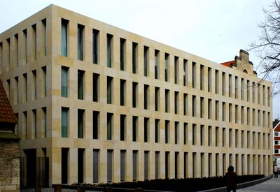 Located at Überwasserkirchplatz 2, the library connects with the seminary and Überwasser Church through two administrative buildings, forming an integrated complex.