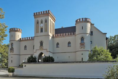 The castle underwent neogothic renovations under Count Spaur and transformation into a water castle by architect Arnold Zenetti in 1853.