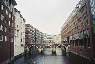 The Ellerntorsbrücke spans 36.2 meters across the Alsterfleet, connecting Hamburg's old town with the new city through its robust stone construction.