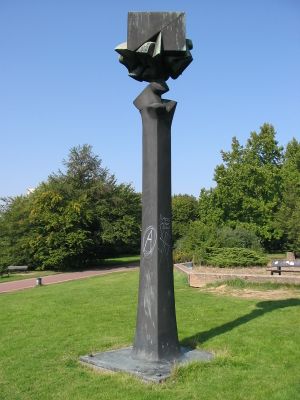 A bronze sculpture called 'Stütze und Last' by Fritz Koenig stands near Berliner Platz, adding artistic value to the park since 1967.