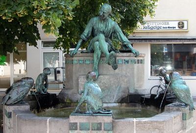 The fountain commemorates Till Eulenspiegel, a medieval character from German folklore who gained fame through stories about his clever tricks and witty deeds.