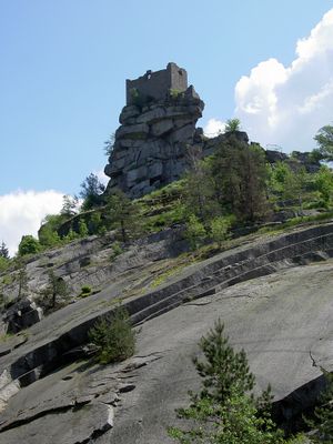 The Flossenburg Castle, constructed from this granite, stands as a monument on the mountaintop, representing the material's significance in regional architecture.