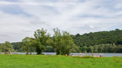 This lake formed in the late 1980s from excavation work that extracted materials for building the nearby federal highway B27. The former quarry was gradually flooded and transformed into the swimming destination that exists today.
