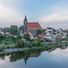 The preserved Gothic Nikolai Church and neo-Gothic town hall form the center of the historic district, representing centuries of architectural development.