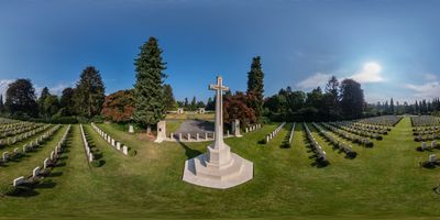 The cemetery section began during World War I with 300 Allied prisoners of war, expanding after 1923 when the Commission centralized Commonwealth military burials.