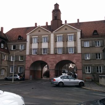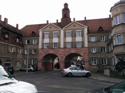 Torhaus mit Durchfahrt der zentralen Hausgruppe der Gartenstadt Werderau