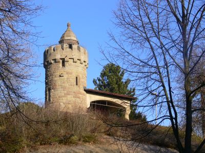 The sandstone tower was constructed in 1895 under architect Carl Weigle's direction for the Stuttgart Enhancement Society to provide panoramic views of the region.
