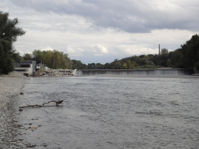 Wolfzahnauwehr, Überfallwehr am Lech in Augsburg, Bayern, Deutschland