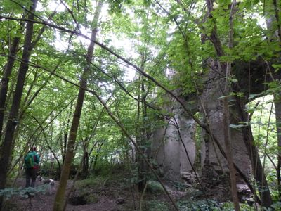 The site sits in a wooded area and can be reached via marked paths that lead from the surrounding forest to the ruins. Visitors should wear sturdy footwear since the ground is uneven and tree roots cross the walking paths.