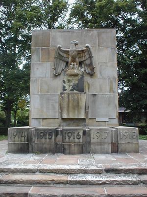 The structure incorporates inscriptions including 'Unseren Gefallenen' and 'Sie werden auferstehen', reflecting German military remembrance traditions.