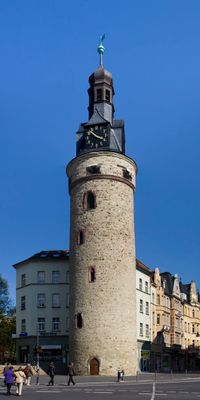 Located at the intersection of Leipziger Street between the marketplace and central station, the tower marks a central point in Halle's urban layout.