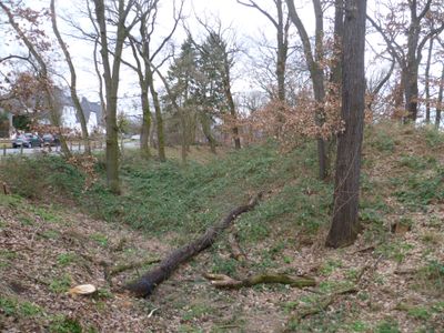 The oval defensive structure measures 55 meters by 40 meters and sits 100 meters above sea level at the edge of Kirschenallee.