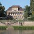 Schloss Übigau is a Baroque château in Dresden's Übigau district, positioned along the Elbe River's banks. The main building blends Baroque architecture with Rococo details, and grounds extend toward the water with formal garden arrangements.