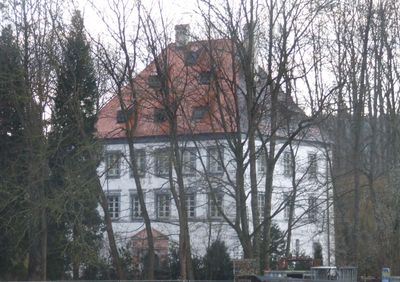 Schloss Pilsach is a manor house in the Bavarian town of Pilsach that stands on a small island surrounded by a pond. The building has a rectangular shape with a distinctive residential tower and a steep hipped roof, while its interior now houses a gallery featuring contemporary glass art collections.