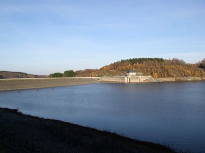 The reservoir maintains a flood protection capacity of 9.9 million cubic meters and includes five pre-dams: Wupper, Wiebach, Dörpe, Feldbach, and Lenneper Bach.