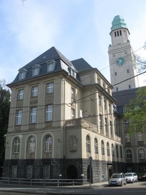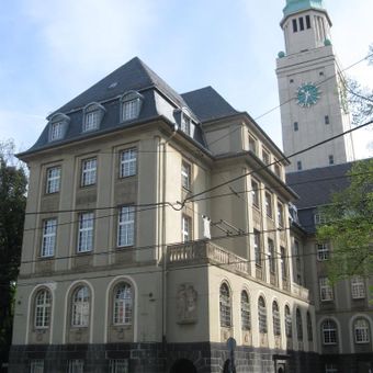 The Rathaus Buer stands in the center of Gelsenkirchen with a 64-meter tower and serves as the technical city hall for urban planning and construction management.