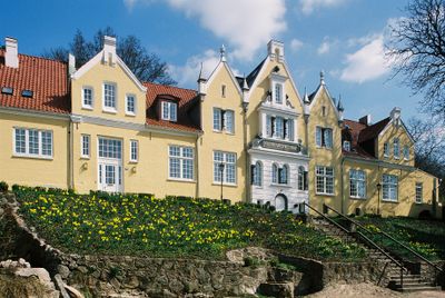 The Margarethenhof building complex stands near the fjord with extended wings and features architectural elements from different construction periods.