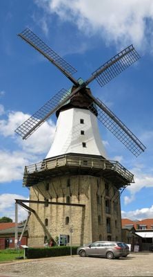 The Amanda Mill stands 32 meters tall, making it the largest windmill in the Schleswig-Holstein region of northern Germany.