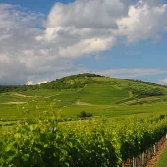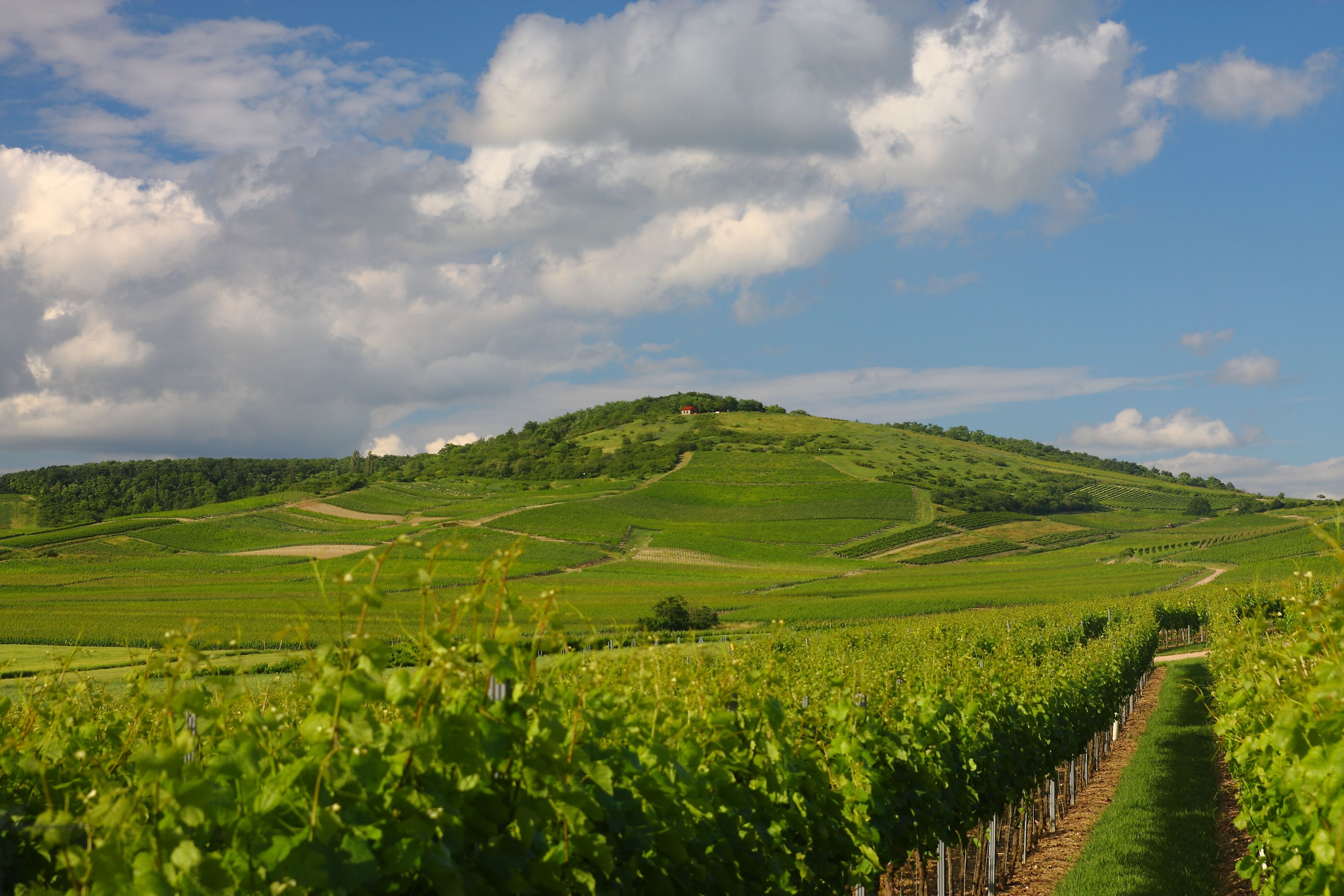 The Zotzenheimer Horn reaches a height of 247.5 meters within the Rheinhessen Hills, featuring gradual slopes and extensive vineyards on its middle and lower sections.