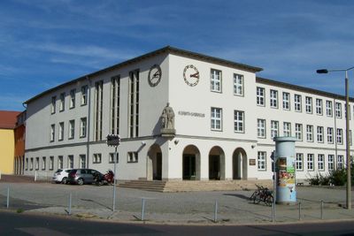 The Elisabeth-Gymnasium occupies a structure built between 1936 and 1938, featuring architectural elements characteristic of the period in Thuringia.