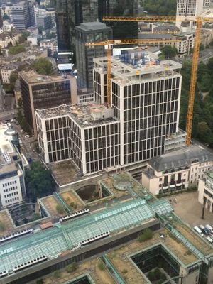 The building houses international organizations, including the law firm Linklaters and industrial insurer FM Global, contributing to Frankfurt's status as a financial center.