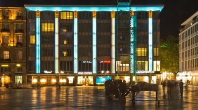 Peter Behrens designed this building in 1910 to serve as an administrative center for the Mannesmann industrial works. Following World War II, it transitioned to housing state administrative functions and offices.