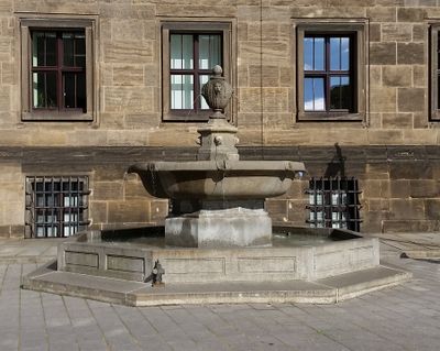 The bronze sculptures on the well incorporate regional motifs and design elements that reflect the artistic traditions of Saxony.