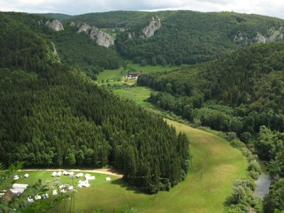 The Upper Danube Valley stretches across 2,707 hectares of land, featuring steep limestone cliffs, beech forests, and mixed woodland areas along the river.