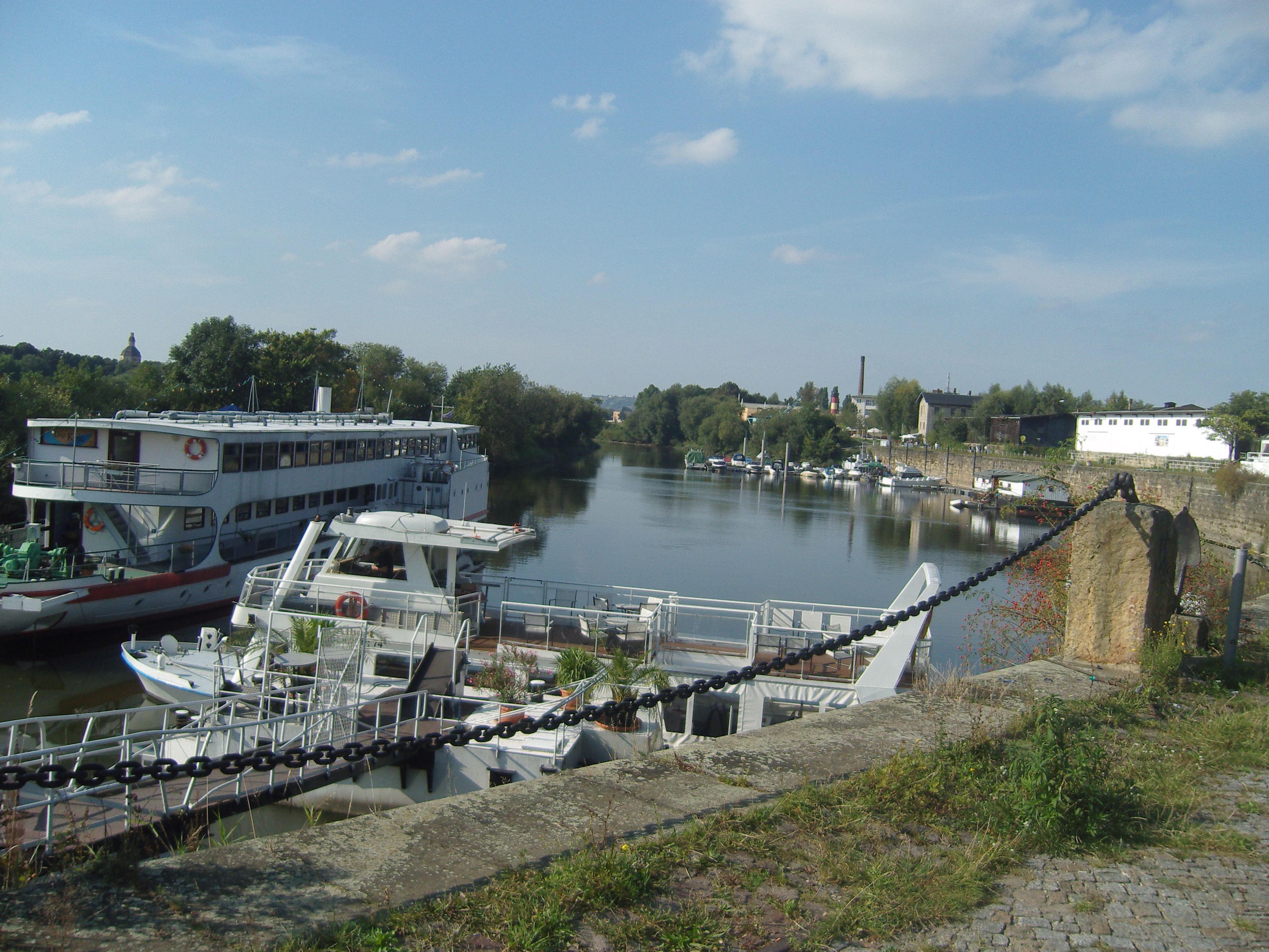 The Neustädter Hafen stretches along the right bank of the Elbe River, featuring three floating piers equipped with water and power supply stations.